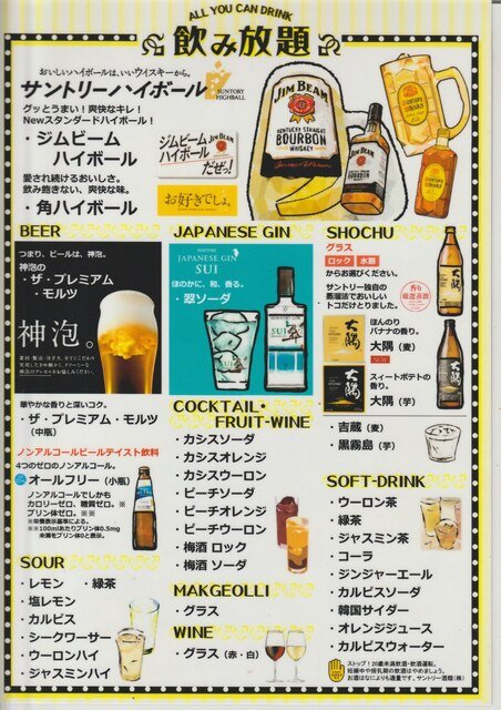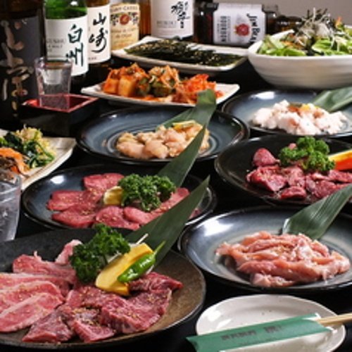 | コース内容 ( おすすめコース ) | 〔前菜〕 ●韓国のり ●キムチ盛り合わせ ●ナムル盛り合わせ ●サンチュサラダ 〔お肉〕 ●上タン ●挑和牛カルビ ●豚カルビ ●牛ハラミ ●ホルモン ●セセリ 〔お食事〕 ※以下から1品お選び下さい。 ●ライス ●ミニビビンバ 〔スープ〕 ●わかめスープ 〔デザート〕 ●アイス |